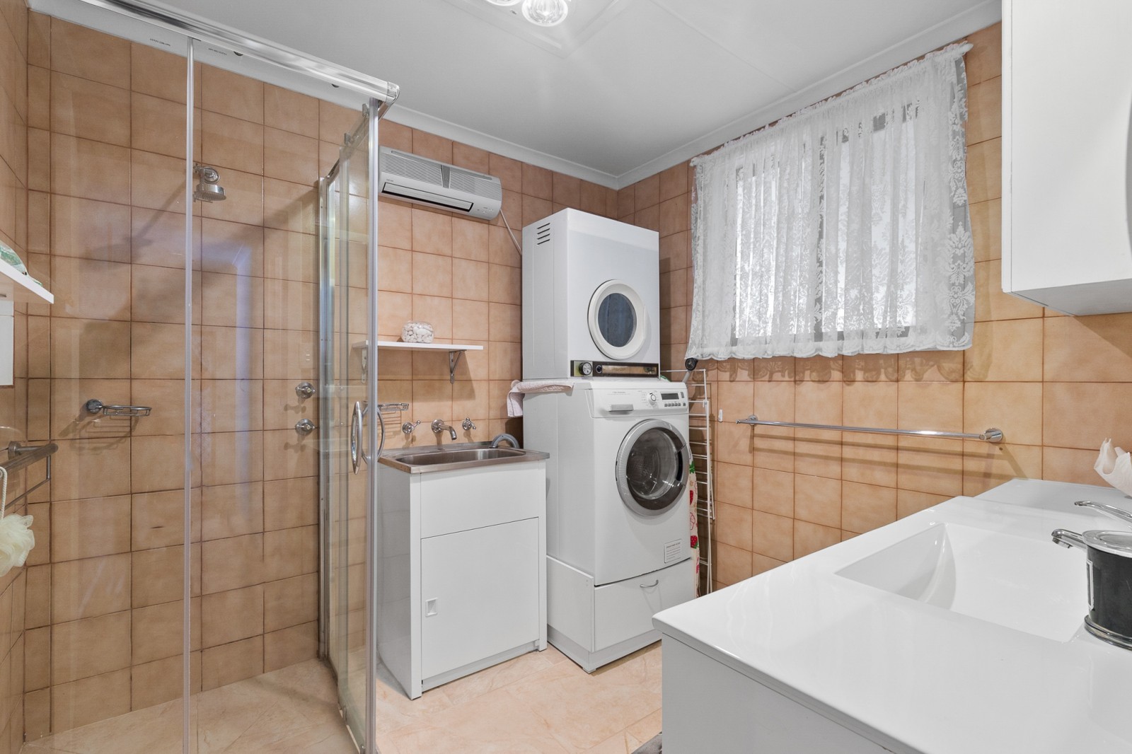 - Bathroom with separate toilet and integrated laundry facilities