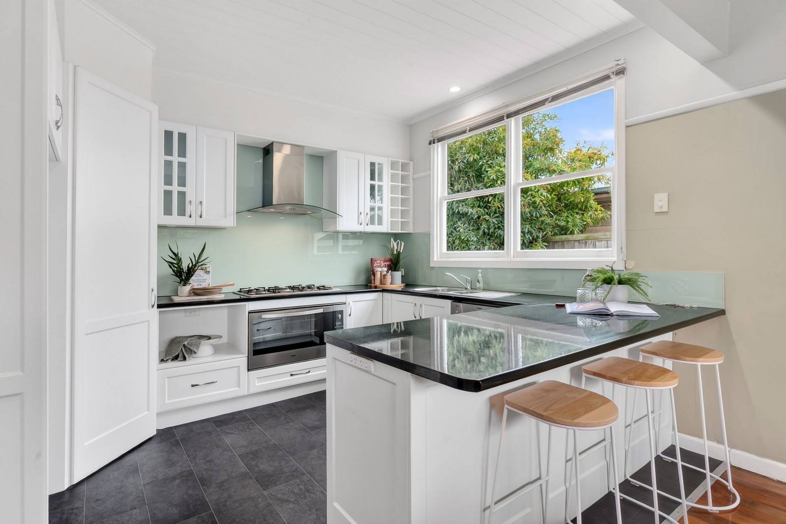 Gas ducted heating, split system heating & cooling, ceiling fans and an open fire place further enhance the liveability of the home, as well as a well-appointed kitchen featuring a gas stove, electric oven and dishwasher.