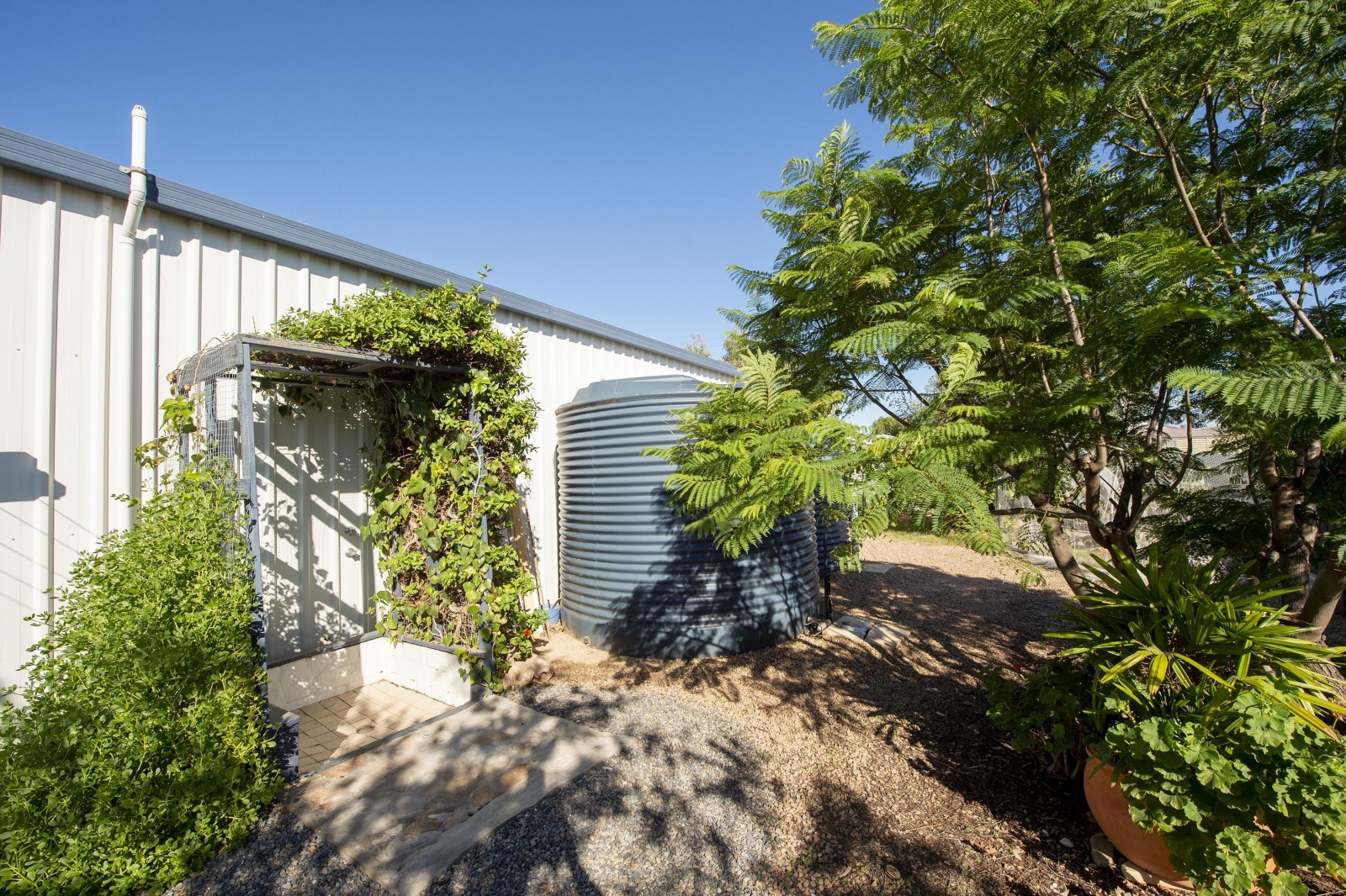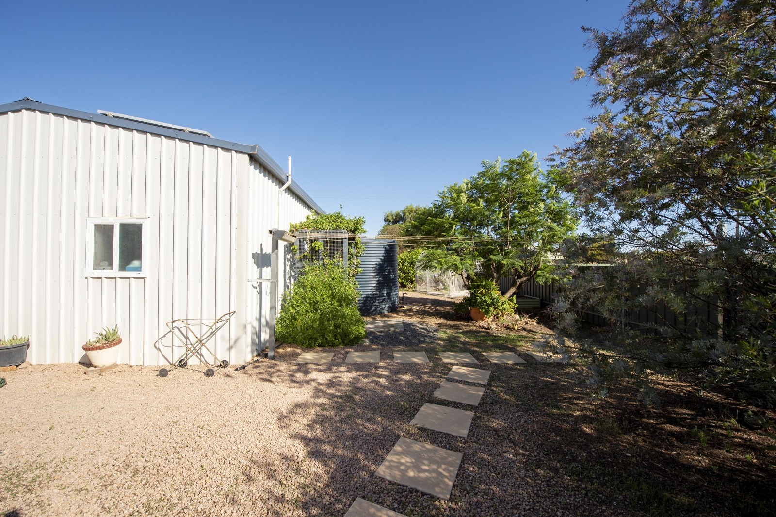 Water security is well catered for with three rainwater tanks totaling approximately 23,000 litres, plumbed directly to the home, along with mains water available if required. Additional features include a gable carport and the convenience of dual access from both Ponape Street and Baroota Terrace.