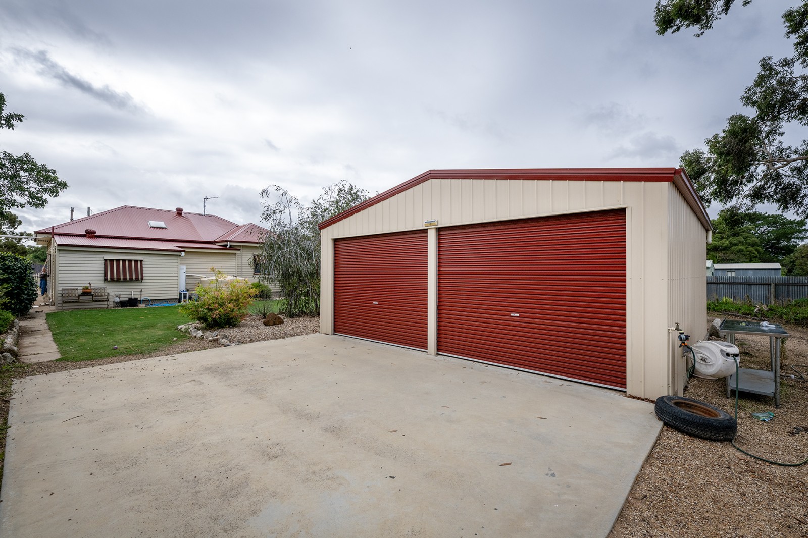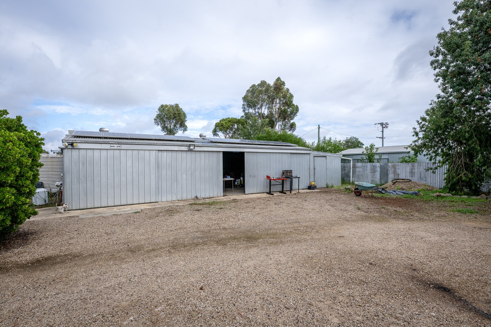 Set on an expansive allotment of approximately 2,149m², the outdoor space is equally impressive. The grounds are neatly maintained with low-maintenance gardens, providing a peaceful and private setting. Shedding is a standout feature, with a substantial four-bay shed, a separate two-vehicle garage, and a well-appointed chicken run. The property also includes a septic system and offers excellent accessibility, with dual side access points allowing easy drive-through capability to the rear yard.