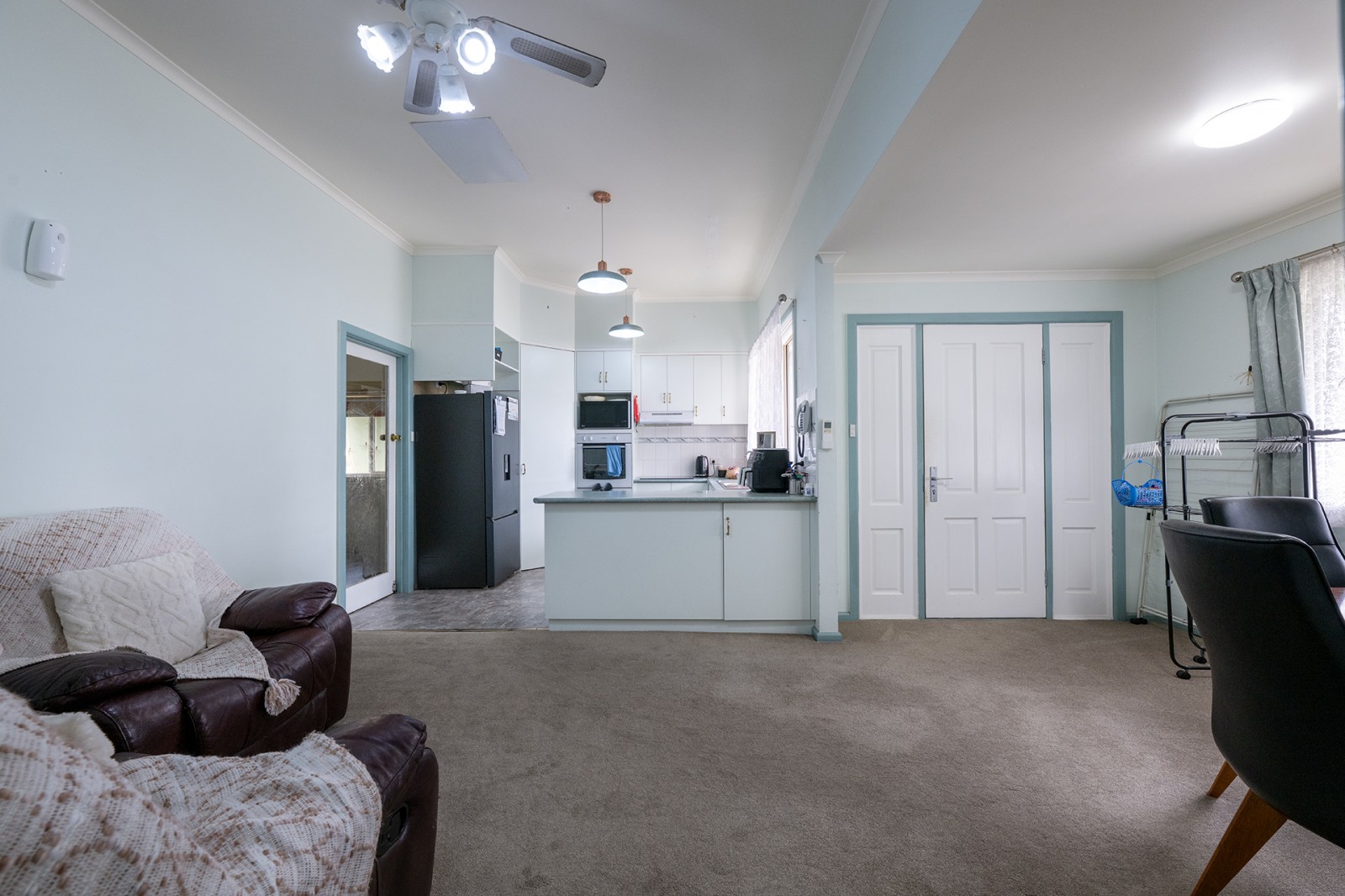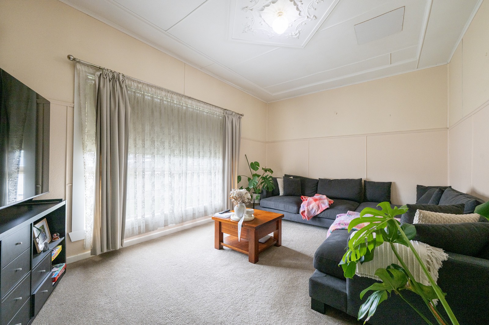 This beautifully presented property has been exceptionally well maintained throughout. Thoughtfully updated and designed for comfortable modern living, it provides a wonderful balance of space, functionality, and charm. At the heart of the home is a contemporary open-plan kitchen, fitted with electric appliances, including a dishwasher, and complemented by a walk-in pantry. This space flows seamlessly into the light-filled dining and living area, which is equipped with split system heating and cooling to ensure year-round comfort. A separate formal lounge offers an additional living zone, showcasing an ornate ceiling and a feature fireplace that adds character and warmth. This room is also serviced by its own split system, making it an inviting retreat for relaxation or entertaining. All three bedrooms are generously proportioned. The master suite is particularly impressive, featuring a large walk-in robe and convenient access to the main bathroom, as well as a spacious walk-through linen closet. The second bedroom includes built-in robes and a ceiling fan, while the third bedroom is equally well-sized and versatile. The home is serviced by a second bathroom, complete with a separate shower and toilet, enhancing practicality for families or guests. The laundry is notably spacious, offering extensive built-in storage.