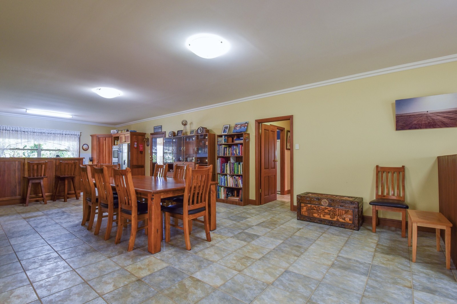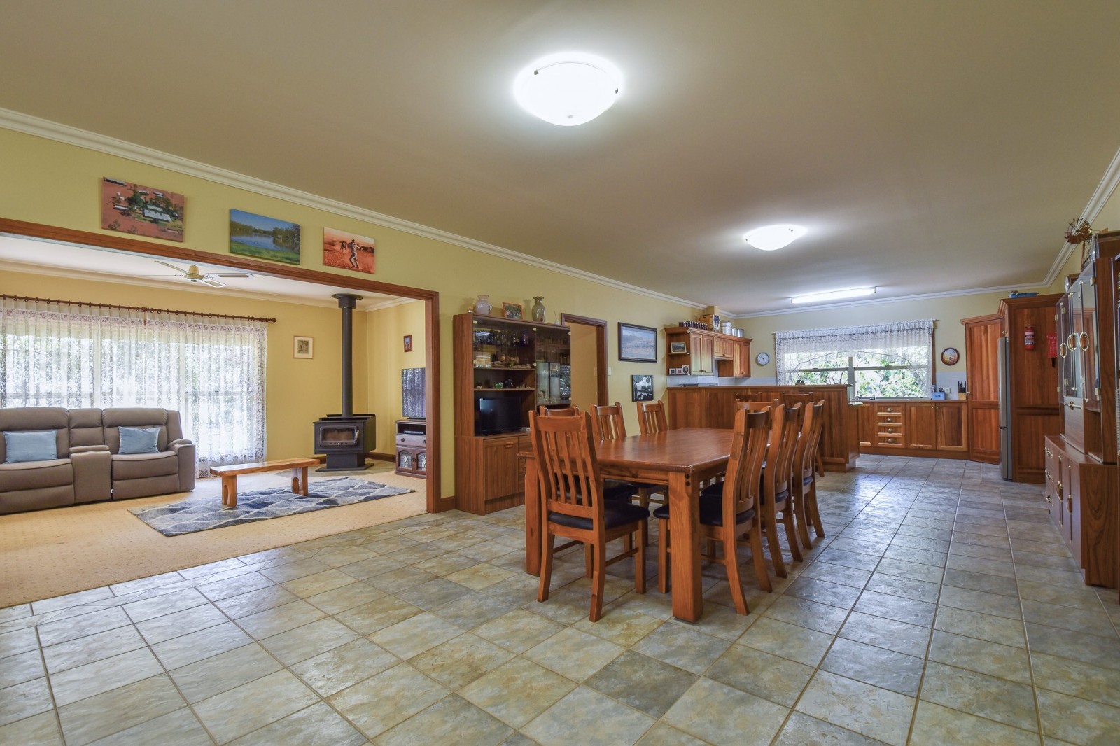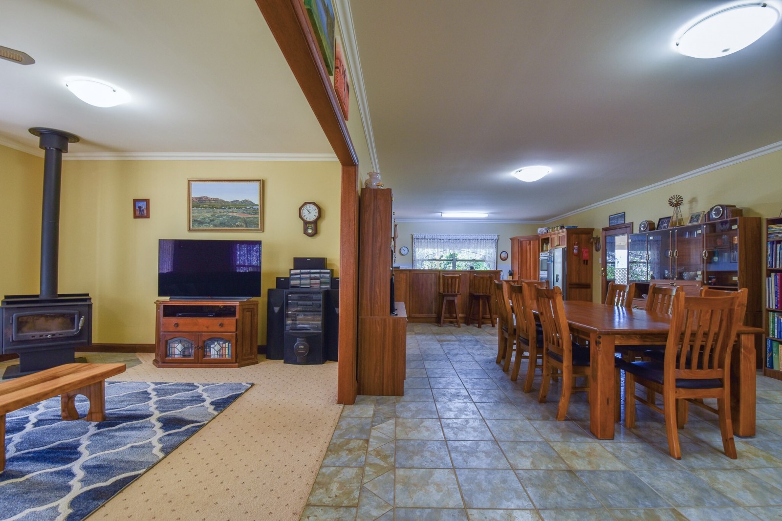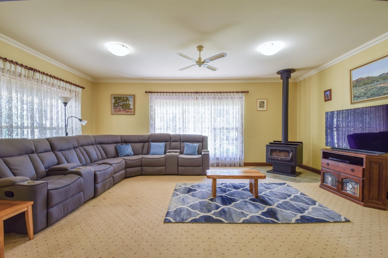 A separate lounge provides a second living area and includes a combustion wood heater, making it a comfortable space during the cooler months.