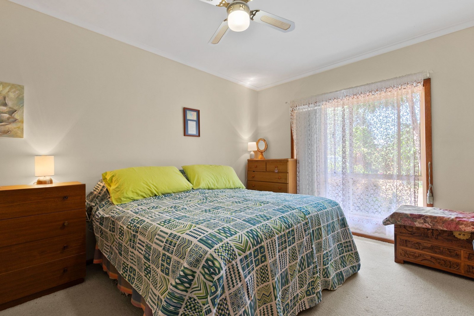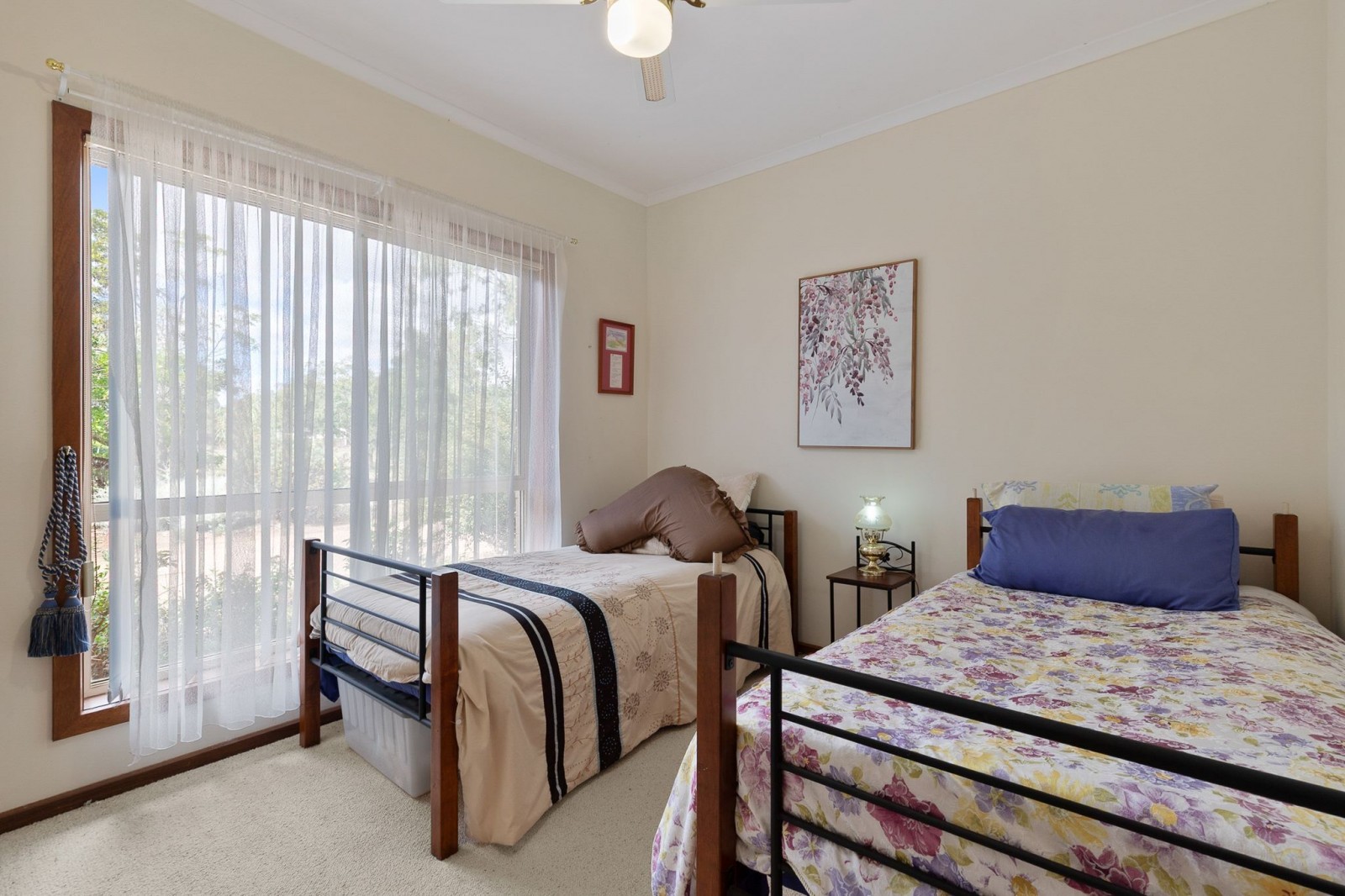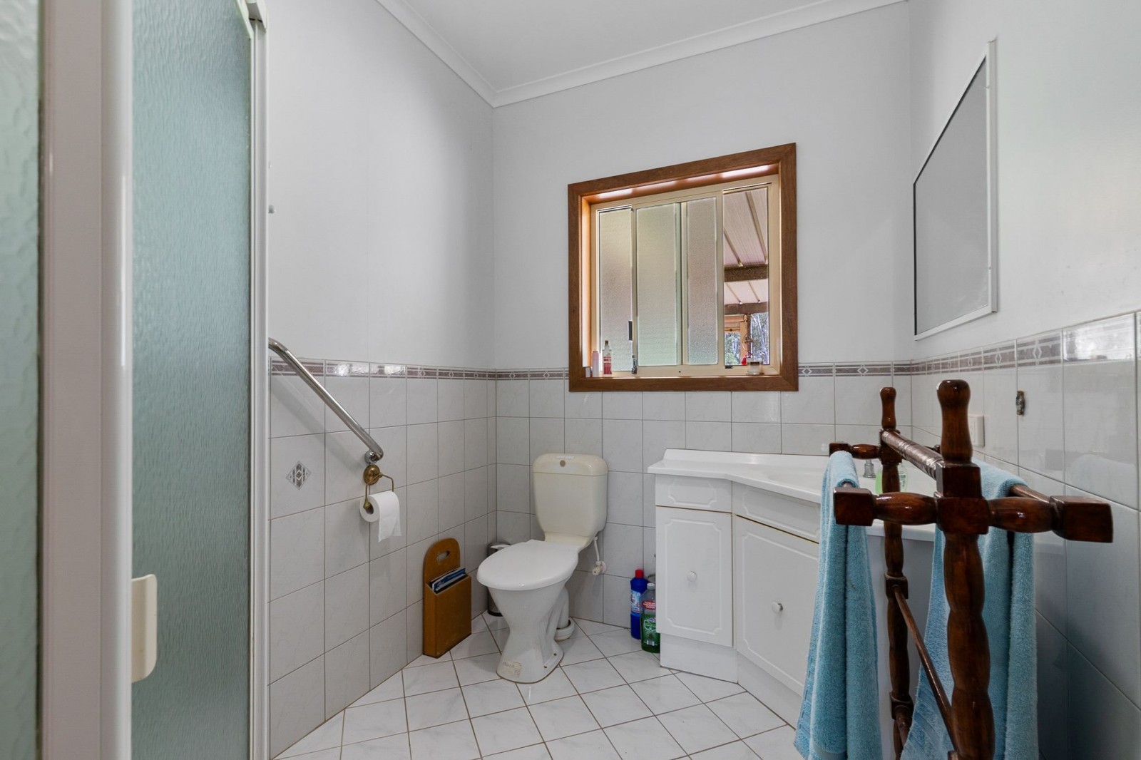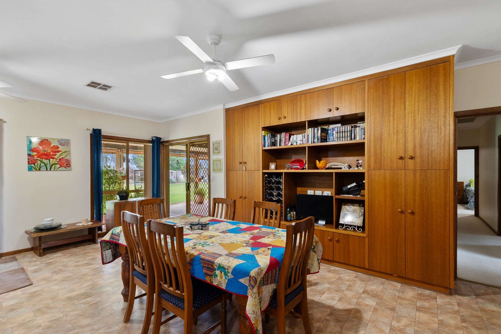 The main bathroom is centrally located to service the home with ease, offering a shower, bath, and single vanity, alongside a separate toilet. The laundry is well-equipped with tiled flooring and a stainless steel wash trough. An additional room, currently utilised as a home office, enjoys calming views an ideal setting for work or study.