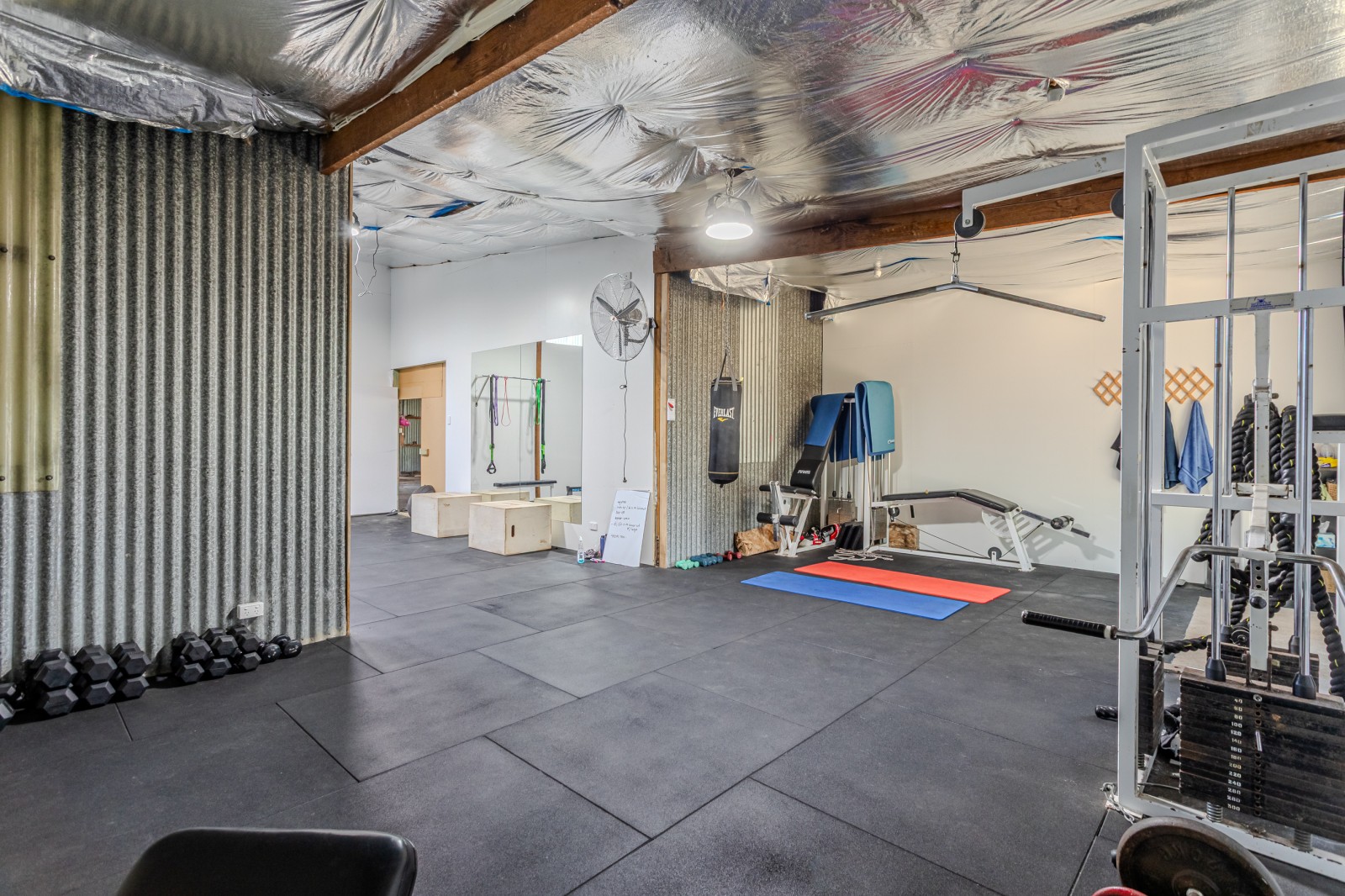 Adjoining the main shed is an insulated area ideal for an office, lunchroom or recreation space. Currently set up as a gym, this space provides excellent flexibility, with gym equipment available for negotiation if desired. A rare and practical offering in a sought-after central location.