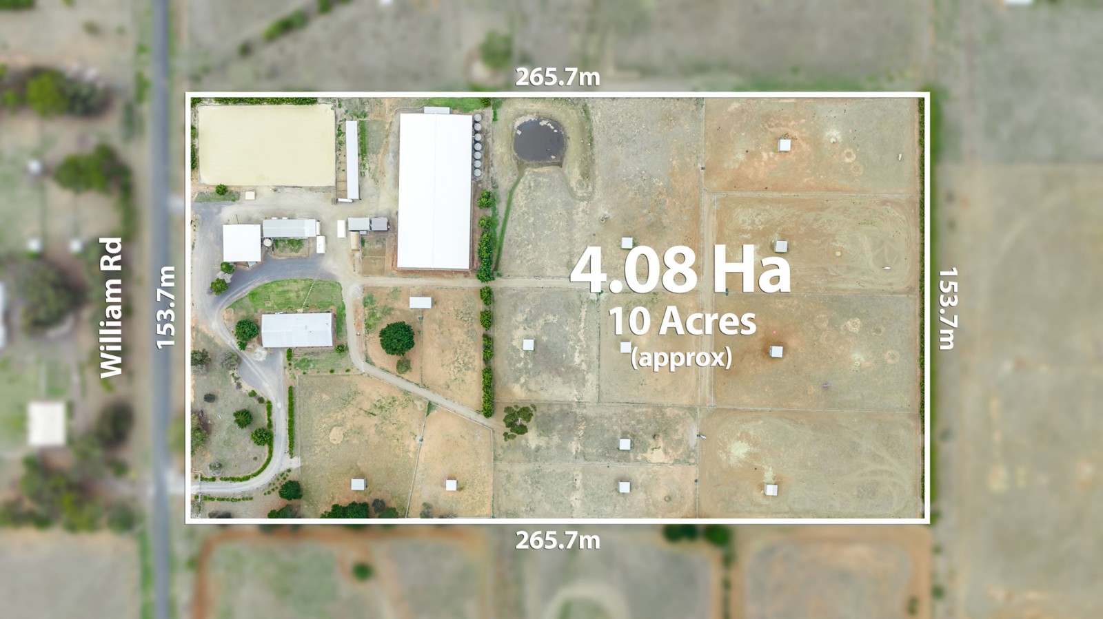 The farm is divided into 13 horse paddocks, all with horse shelters, electric fences, troughs connected to town water, 1 dam, 8 water tanks for extra water supply and a dog run.