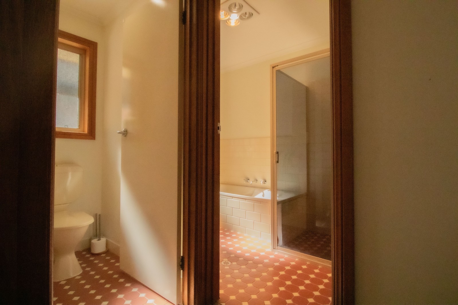 · Well-appointed bathroom featuring both a shower and bath, along with a separate toilet for added convenience.
