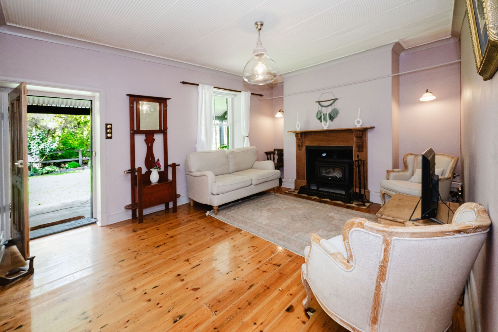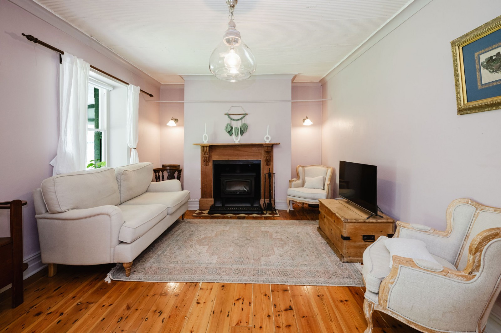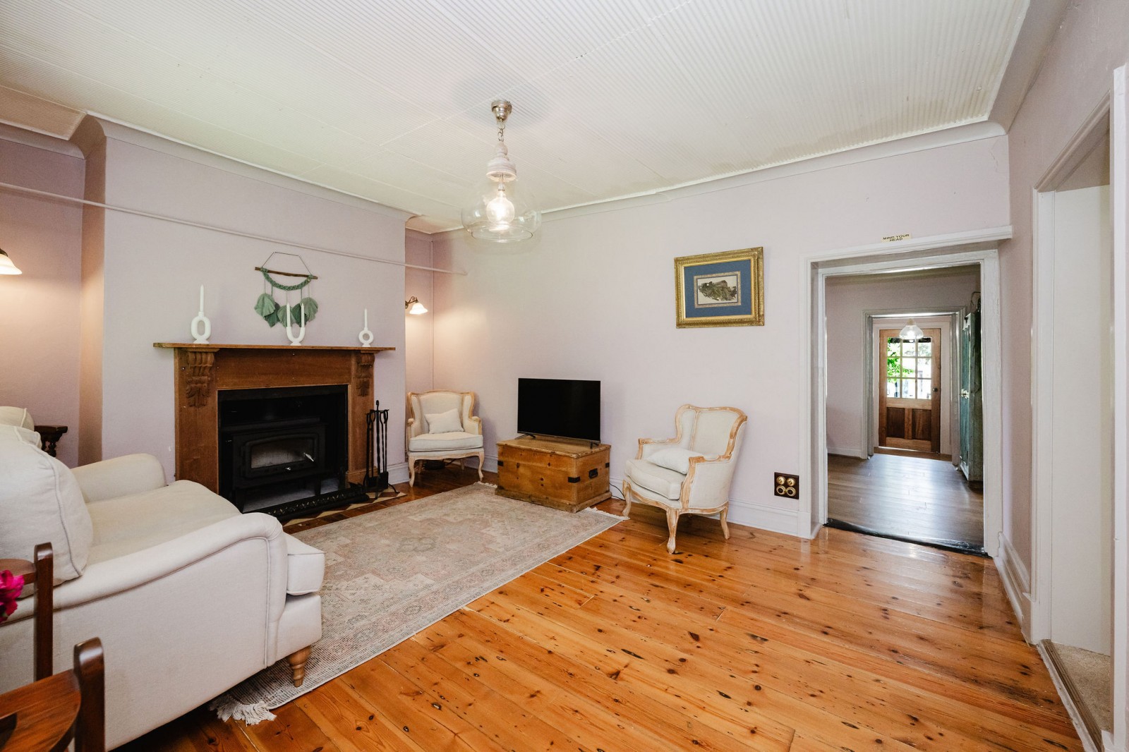 A classic bullnose front verandah, framed by a private hedge and lush manicured lawn, creates an inviting first impression. Inside, the spacious lounge room is enhanced by a Nectre combustion heater, providing a cosy retreat during the cooler months. A separate dining room, also equipped with its own combustion heater, offers an intimate setting for family meals and entertaining.
