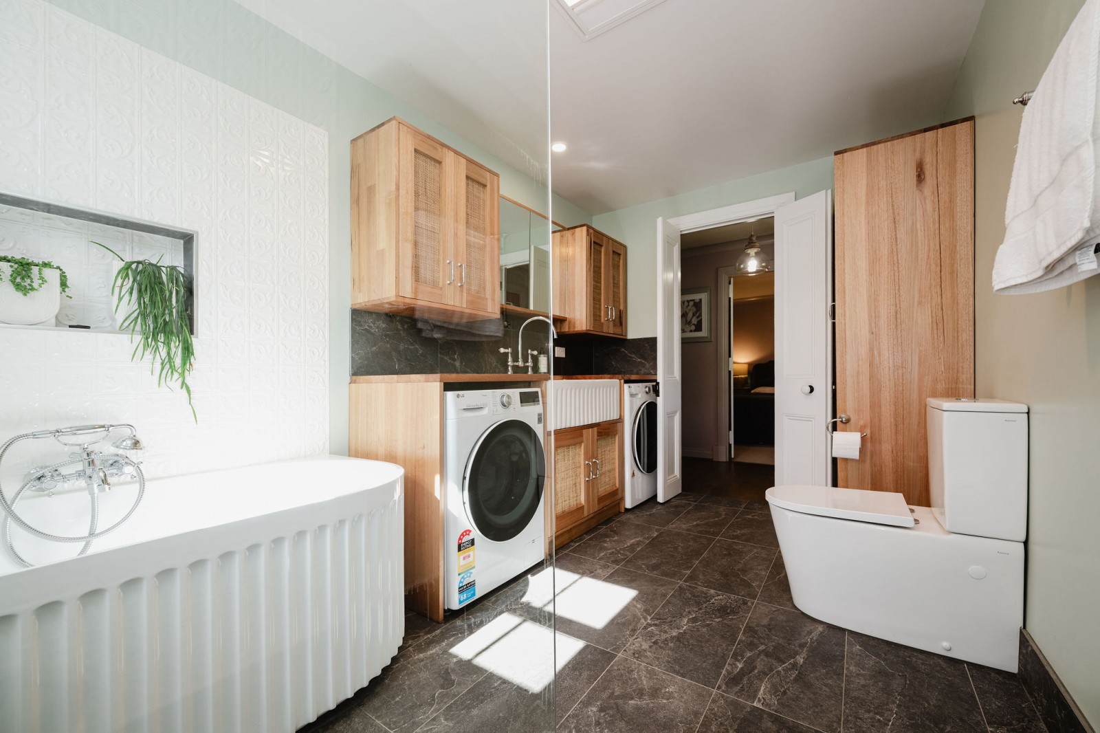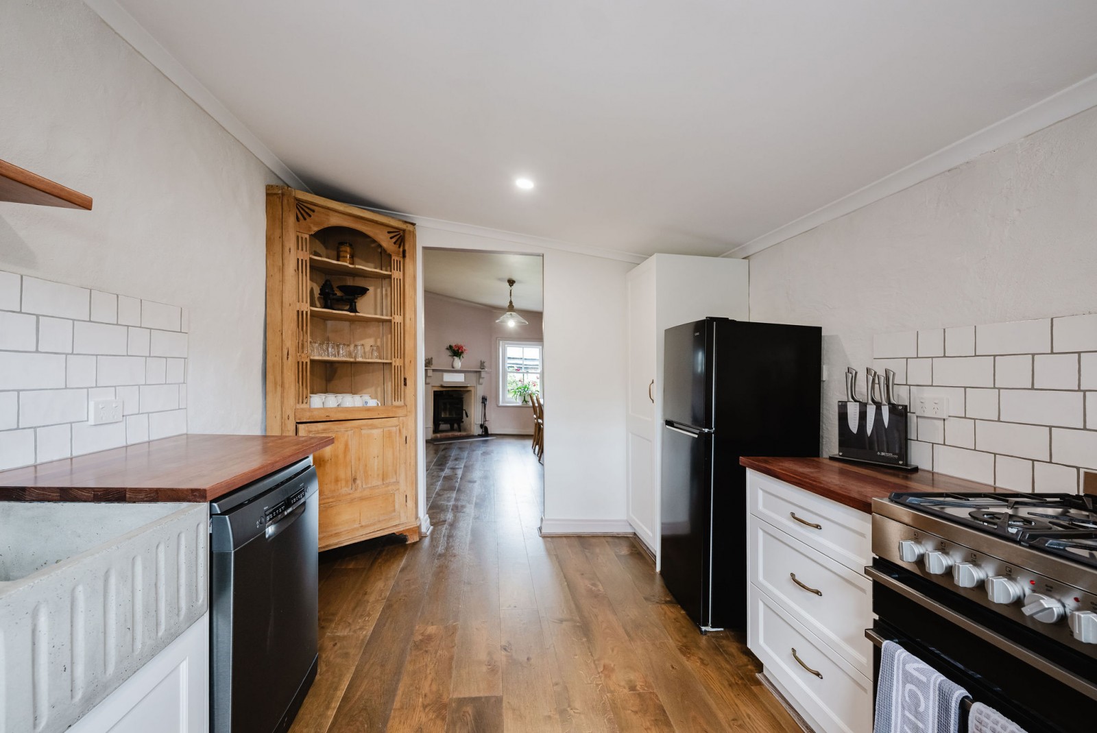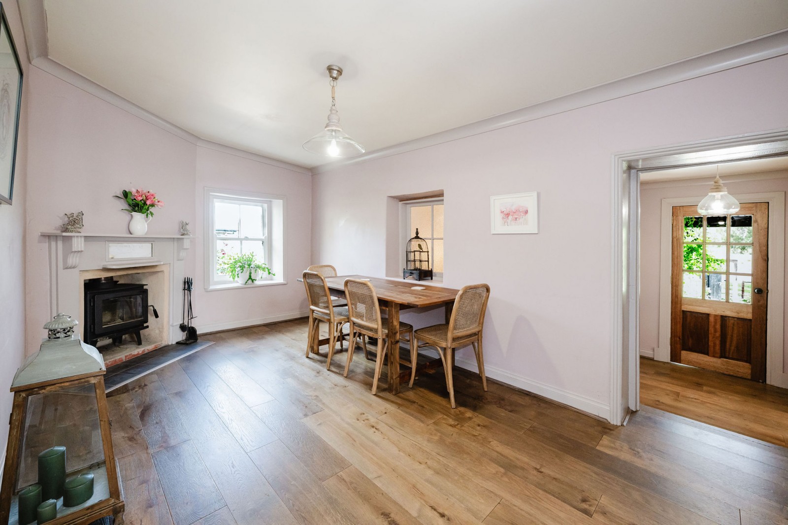 A classic bullnose front verandah, framed by a private hedge and lush manicured lawn, creates an inviting first impression. Inside, the spacious lounge room is enhanced by a Nectre combustion heater, providing a cosy retreat during the cooler months. A separate dining room, also equipped with its own combustion heater, offers an intimate setting for family meals and entertaining.