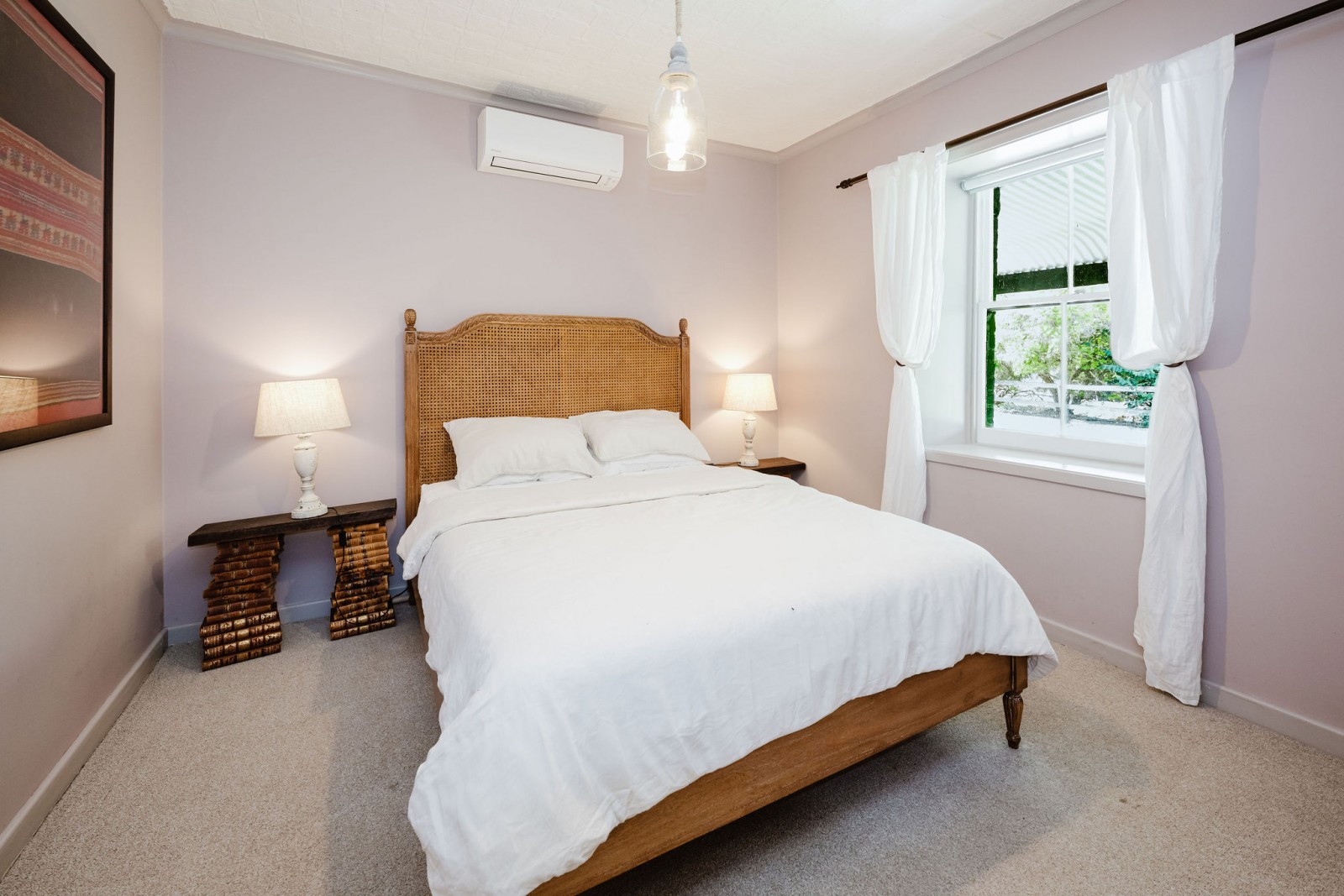 Rich in character and warmth, the home beautifully blends heritage charm with modern comforts. It features two generously proportioned bedrooms, complete with timber-framed windows, ornate ceilings, and split system air conditioning for year-round comfort.