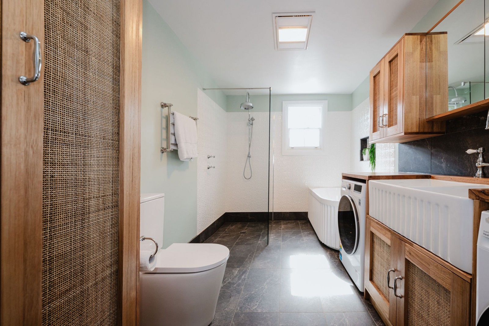 The standout bathroom serves as a luxurious sanctuary, featuring a freestanding bath, separate shower, and a heated towel rail for an added touch of indulgence.