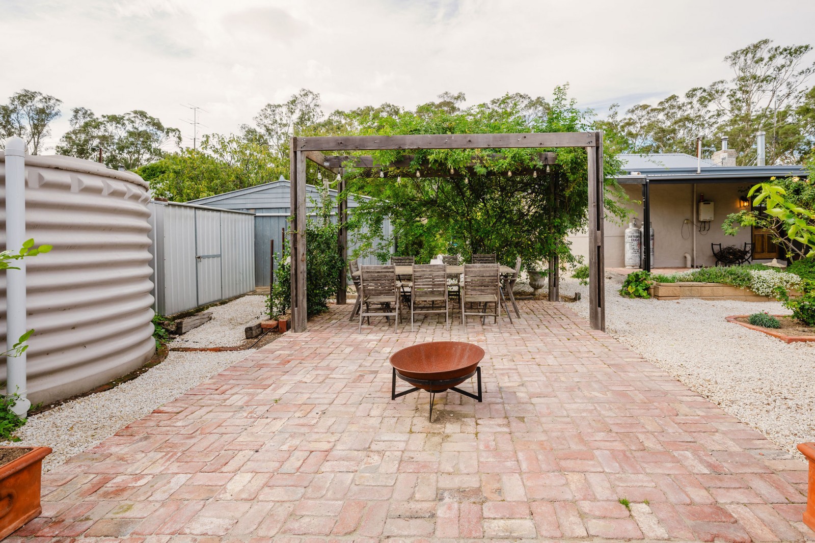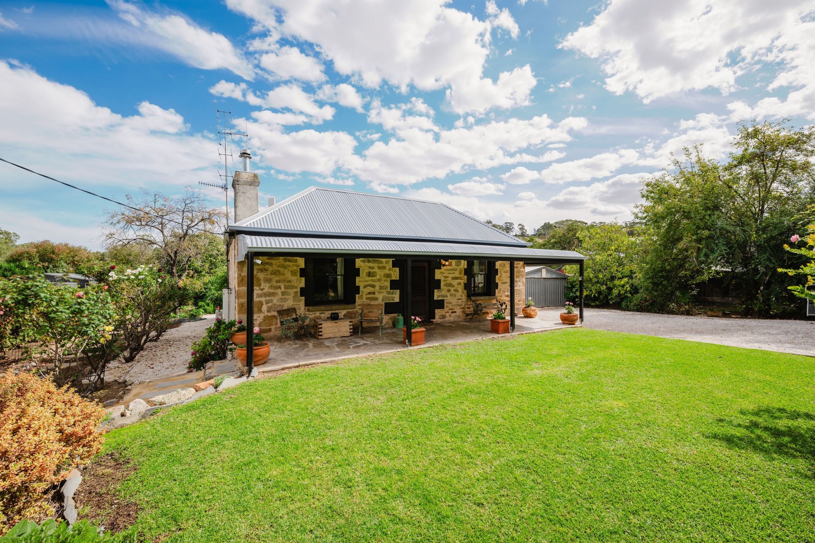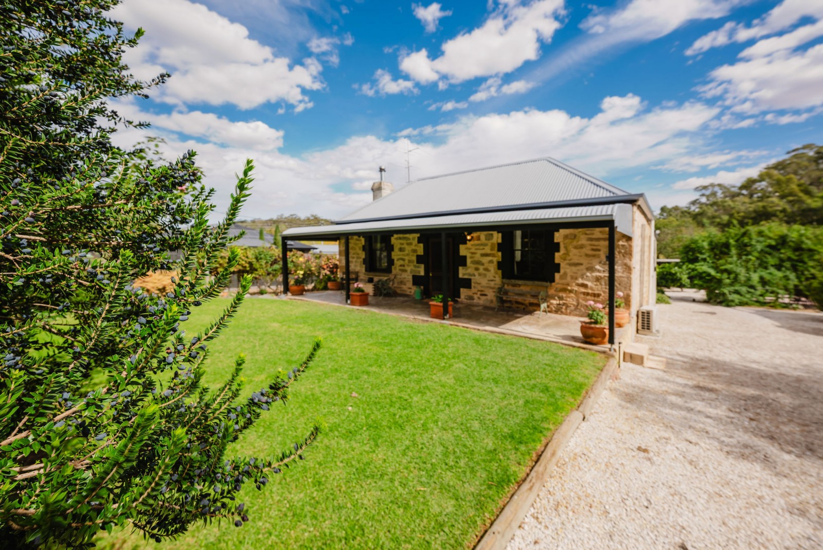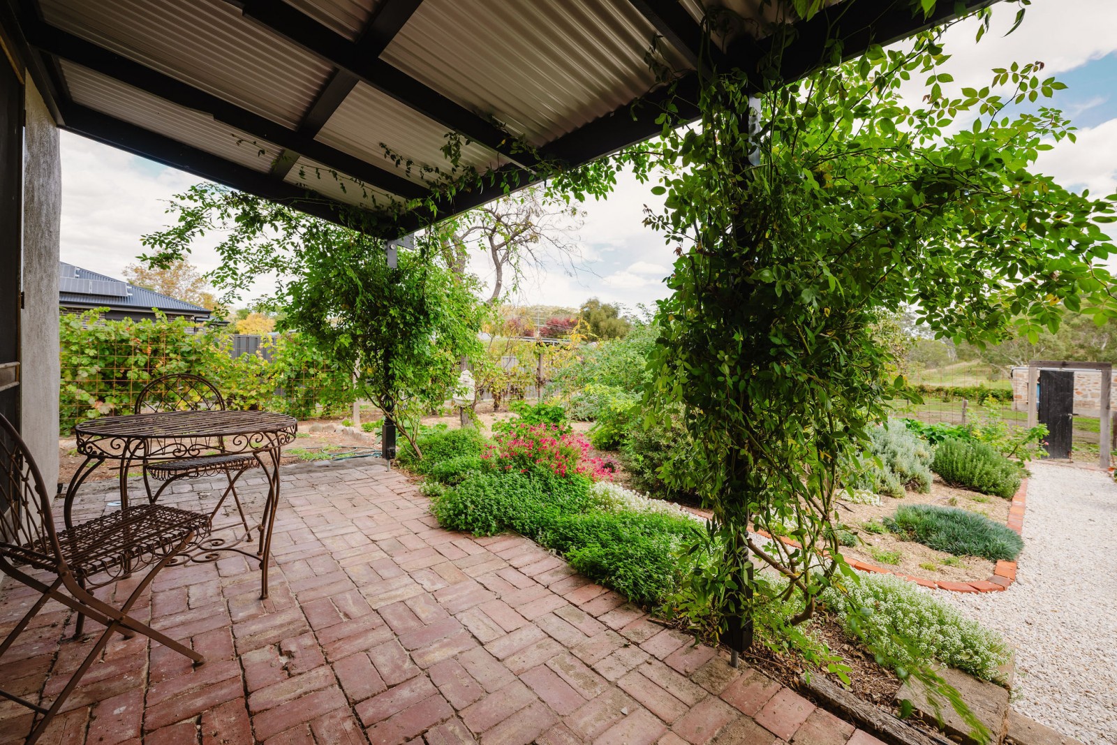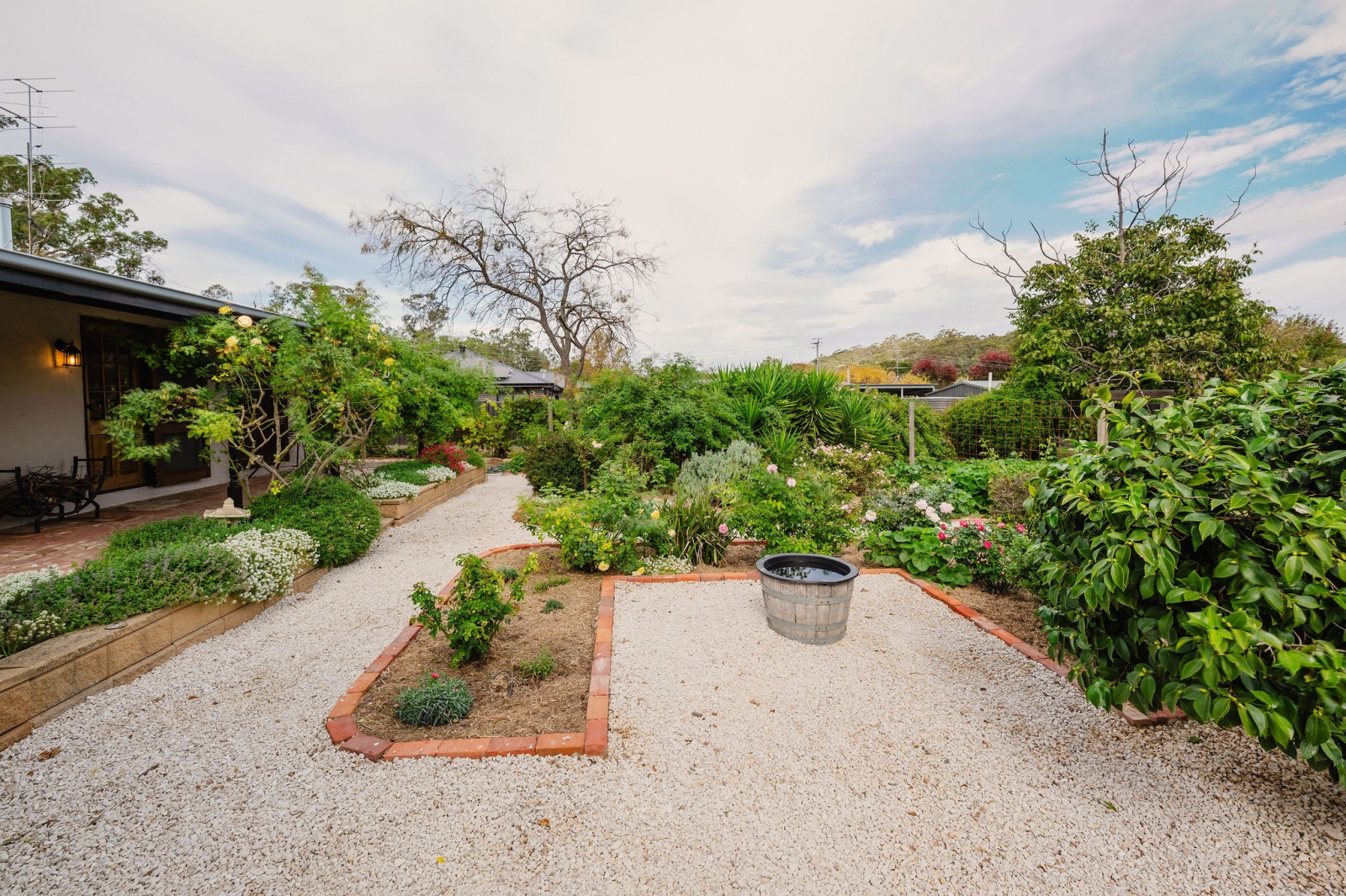 The expansive rear yard captures the essence of country living, with its cottage-style garden and breathtaking Clare Valley views.