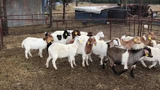 A handy hand full first and second x does weighed 1 hour off feed to av 25.2kg from 18kg to 29kg Will go and make nice mothers please note 2 does have had a opportunity to a bore buck.
