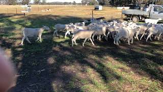 GOOD QUALITY SMALL LINE OF YOUNG AUSSIE WHITE EWES SHOWING LAMB. IDEAL FOR HOBBY FARMER. DUE TO LAMB IN A MONTHS TIME. OFFERED IN TWO LOTS RUN OUT THE GATE