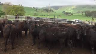 NICE LINE OF UPPER MURRAY BRED WELL GROWN YEARLING ANGUS HEIFERS THAT ARE SURPLUS TO BREEDING REQUIREMENTS 20% OF MOB HAS BEEN REMOVED . PLEASE NOTE 6 HEIFERS WITH OLD RINGWORM MARKS THAT ARE REGROWING HAIR , 2 HEIFERS WITH SLIGHT CLOUDYNESS FROM OLD PINKEYE SCARRING VISION APPEARS FINE NOT CONSIDERED DETRIMENTAL TO HEIFERS. DUNOON AND RENNYLEA BLOOD .
