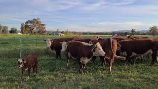 Nice line of hereford heifers and calves. These heifers were purchased from Roma as preg tested heifers and the vendor has calved them down, and with more on the way has decided to sell the early calvers. They are of good framed heifers and doing an excellent job on the calves with plenty of milk. Please note the vendor has another 2 lots of heifers and calves in this sale; another 10 hereford heifers and calves and 14 angus hereford cross heifers and calves. Calves have all been marked.