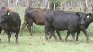 A VERY SMART LINE OF RISING 2YRS EU ANGUS HFRS PTIC TO REGISTERED WAGYU BULLS. PURCHASED OFF MURROA EAST & JONES FAMILY VICTORIA. THESE HFRS HAVE BEEN SCANNED IN CALF BY THE VET TO COMMENCE CALVING FROM 13TH MARCH TO THE 16TH OF MAY. SCANNED IN CALF OVER A WEEK PERIOD. 20 SCANNED IN 1ST CYCLE, 5 SCANNED IN 2ND CYCLE. ( WHITE TAGS ).6 SCANNED IN 3RD CYCLE. (ORANGE TAGS). HFRS ARE A MEDIUM TO LARGER FRAME PRESENTING WITH A LOVELY FEMINE TYPE. JUST ON THE DOO CERTAINLY MORE ROOM IN THESE HFRS TO GROW. ALL HEALTH TREATMENTS ARE UP TO DATE VENDOR IS VERY DILLIGENT IN GIVING A VERY THOUROUGH HEALTH PROGRAM . THESE HFRS WERE ALL PURCHASED FROM VICTORIA, BANQUET, MILLAMURRAH AND WERRAN ANGUS GENETICS. VERY ODD HFR NOTED WITH OLD PINKEYE SCARRING NOT SEEN DETRIMENATAL 1 HFR NOTED WITH TO THE SMALL DOTS IN EYES CERTAINLY DIDNT AFFECT HER VISION.. . JOINED TO WAGYU BULLS SO THESE FEMALES ARE CERTAINLY CARRYING A VERY VALUABLE ASSERT. THERE ARE HFRS DISPLAYING WARTS NOT SEEN DETRIMENTAL.