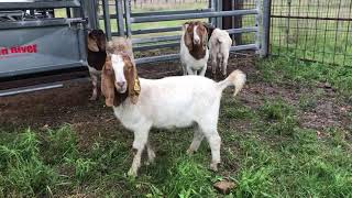 6 good types of Boer buck Exhibiting some better characteristics of the breed weighed 1 hour off feed to AV 31.2kg 5 of these buck are October - November 2020 drop and 1 is a July 2021 drop and are all ready to go to work for you the sire of these bucks pedigree is in the photos.