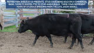 FIGTREE PARK ANGUS STUD PRESENTS, STUD COWS BEING SOLD ON A COMMERCIAL BASIS. 7.8YRS TO 10.8 YRS. PTIC TO STUD ANGUS BULLS. THESE COWS REPRESENT YEARS OF STUDIOUS BREEDING FROM THE LATE JASON SIDDELL. THESE FEMALES ARE A GROUP OF COWS THAT HAVE BEEN RUNNING ON LEASE COUNTRY . LEASE IS FINISHING UP SO THE COWS HAVE TO BE MOVED ON. THERE ARE SOME VERY WELL BRED STUD ANIMALS IN THIS GROUP. MAINLY OLDER COWS THAT HAVE BEEN LEFT IN THE PROGRAM FOR A REASON. THEY HAVE BRED WELL OVER THERE TIME. DEPASTURED TO STUD SIRES FROM JASON BULL BATTERY. FIGTREE S20 AND ASCOTT SYPHONY A PRIME MINSTER SON. NICE GROUP OF COWS. VENDOR IS WILLING TO TRY AND UPGRADE ANY COWS TO STUD IF IT CAN BE ACHIEVED. FOR $2000/HD.