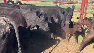 A GOOD LINE OF 4 YEAR OLD ANGUS BREEDERS WITH SAPPY CALVES AT FOOT. COWS PRESENT IN STRONG STORE CONDITION HAVING ENDURED A TOUGH WINTER BUT ARE NOW ON THE IMPROVE WITH THE WARMER WEATHER AND FEED CONDITIONS. THEY HAVE BEEN PUTTING ALL THEIR RESOURCES INTO THE FRESH CALVES ON THE GROUND. CALVES ARE UNMARKED. COWS SHOW GOOD BONE A DEPTH OF BODY & WILL DEVELOP INTO SOLID GOOD - LARGE FRAMED BREEDERS GIVEN THE FEED. TEMPRAMENT IS A PLUS WITH THESE MATRONS...VERY QUIET EASY HANDLING UNITS THAT WERE A PLEASURE TO WORK WITH. SOUND SOLID FULL MOUTHS. NO BULLS ARE RUN ON THE PROPERTY SO PROSPECTIVE PURCHASERS WILL BE ABLE TO JOIN THESE UNITS TO THE SIRE OF YOUR CHOICE. DRENCHED WITH IVERMECTIN AT ASSESSMENT AS I NOTICED RUBBING OF THE COAT SO ADMINISTERED BACKLINE FOR BUYERS CONFIDENCE. PURCHASED EX YASS IN FEBRUARY AS A LARGE CONSIGNMENT. THIS RUN IS BEING OFFERED TO LIGHTEN THE LOAD ON PROPERTY. GOOD QUALITY BREEDERS, ALL FRAME TO BE FILLED, WITH ALL THEIR LIVES IN FRONT OF THEM.