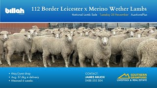 Billah Partnership are offering the annual draft of 112 BLxMerino Wether Lambs. Lambs are out of Gleneden blood Ewes by Coolami Border Leicester rams. neat line of Realistically reserved Lambs.