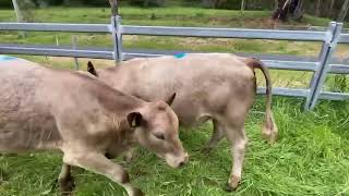 Buyers a small line of Murray Grey steer weaners averaging 274kg. These 9-11 month old steers are weaned and ready to start gaining a lot of weight very quickly, they were also extremely quiet to handle. These steers have good frame and length and given time should develop into medium to heavyweight cattle suitable for all grass fed programs being Greenhams NE acc and NG/NA
