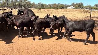 A good quality line of well bred Angus first calf heifers & calves. The heifers are displaying good medium frames & are presenting mostly in store condition, having come through a harsh, dry winter at Yass, allowing for a good opportunity to add considerable weight & value quickly, on better quality feed. Heifers have shown good weight gains since purchase & are currently midway through cleaning up in the coat, & well on the way forward. Heifers are displaying good maternal instincts, maintaining a fresh calf, despite limited paddock feed & supplementary feeding. 1 extra calf in the mob is assumed to be a twin, as all calves are displaying good freshness, however vendor has been unable to link it to a specific cow. 5 heifers & 3 calves presented with pink-eye infection at assessment & were treated with Orbenin cream, & will be re-treated prior to delivery. Heifers continue to show resilience demonstrating good constitutions in the face of various adversities due to dry, dusty weather.