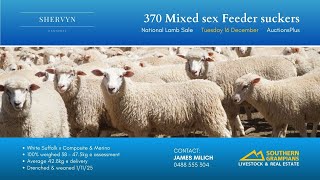 Shervyn Pastoral are offering 370 Vendor bred Mixed sex feeder weighted lambs, This group of Lambs have been Individually weighed 38 - 47.5kg at assessment and present with excellent frame and room to carry weight, These Lambs will have no problems finishing to heavy Domestic or Export weighted Lambs if shown the right feed. Lambs are June drop and have been recently Drenched with Duocare on the 1st of November. A great opportunity to secure Lambs leading into a lucrative Lamb market.