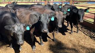 A NEAT LINE OF SCANNED IN CALF COWS TO A LBW BLACK LIMOSIN BULL. RISING 4 YEAR OLD ANGUS COWS PRESENTING IN FRESH GOOD STORE - FORWARD STORE CONDITION. HAVE SHED THEIR WINTER COAT AND DISPLAYING A NICE SHINE IN THE HIDE. A PLEASURE TO WORK WITH IN THE YARDS AND WERE NOT AGITATED BY MY PRESENCE. COWS ARE GOOD MEDIUM TO GOOD FRAMED WITH A SQUARE BODY & SHOWING GOOD BONE FOR THEIR TYPE. THIS IS THEIR 3RD CALF & ARE DUE TO COMMENCE CALVING EARLY MARCH ONWARDS. COWS HAVE COME THROUGH A VERY TOUGH WINTER IN THE TABLELANDS & ARE ON THE IMPROVE & ARE SETUP IN GOOD CALVING CONDITION AT THIS STAGE, WITH ROOM FOR FURTHER WEIGHT GAIN TO FILL THE FRAME. OPPORTUNITY FOR THE SMALLER PRODUCER TO OBTAIN PROVEN BREEDERS WITH A GOOD TEMPRAMENT, EASE OF CALVING [NO CALVES HAVE BEEN PULLED FROM THESE MATRONS] & PLENTY OF SCOPE TO PRODUCE MORE CALVES INTO THE FUTURE. OR WOULD MAKE A GOOD TOP UP PROPOSITION FOR A TRADE INTO THE LATTER PART OF THE YEAR INTO A BOUYANT CATTLE MARKET.