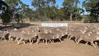This is a draft of Nareen Station bred merino wether lambs (470 run out the gate of 940). These lambs are part of the Nareen Station Annual Production Sale. Nareen Station aims to breed sheep that are highly profitable and easy care. The breeding objectives in the commercial flock are to have adult sheep which are 18-19 micron and capable of cutting large quantities of white, bright wool on a plain bodied sheep.