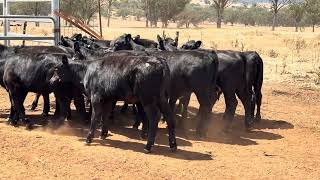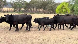A good line of quiet Angus & Angus cross heifers, on their first calf. These heifers were purchased as part of a larger lot of PTIC 1st calvers out of Dunedoo, ex AuctionsPlus, before being calved down & mothered into smaller lines. Heifers present as medium to good frame & are nourishing an attractive line of marked & vaccinated EASTERN PLAINS ANGUS sired calves at foot, which have attained weanable weights. Presenting in fresh store condition, having put most of their energy into sustaining the heavy calves at foot, these heifers are starting to clean up in the coat, but need to be moved on as feed diminishes. Approx 4 cows were observed to have a small percentage of cross in the breeding, with 1 heifer showing traits of slight Santa influence, & some Hereford/red-coated cross influence in the other 3, with minor white on underline. Great opportunity to replace old breeders with young breeders at very favourable changeover rates, whilst getting a bonus calf & change in your pocket.