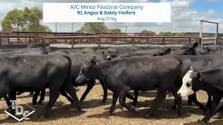 A/c Minto Pastoral Co, a line of 91 Angus & Baldy Heifers, weighed 230-319kg to Ave 277.5Kg curfewed. Antibiotic Free/Grass Fed Only "PCAS Eligible". Cattle were bred on the vendors property's in Hawker SA & Tilpa NSW and have since been trucked to the South East of SA due to tough seasonal conditions back home. Cattle arrived to the agistment property on the 25th November and had been given a PG.