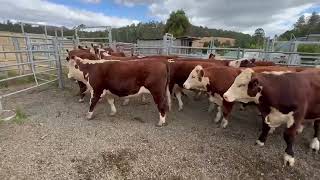 Buyers a top line of well-bred Poll Hereford yearling steers averaging 475kg. These steers were purchased from Powranna store sale last April ex Trim Pastoral, Fingal. These cattle were extremely quiet to handle throughout the whole process! They have good frame and length, and are displaying great shape, style and true to Hereford type. Going forward, these steers should continue to grow out into medium to heavyweight yearlings suitable for all grassfed markets being Greenhams NE acc, JBS FA and NG/NA