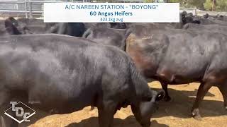 This is an excellent line of feeder EU Angus Heifers. They consist of 29 PTE Heifers (Bang Tailed) and 31 Heifers that have never been joined. They are EU, PCAS eligible and Never Ever Acc. They are bred out of the renowned Nareen Station cow herd. Vendor has been selecting the very best of Weeran Angus bulls for over 20 years, and more recently also from Bowmont & Boonaroo Angus. Selection focus has been on Birth Weight, 600 day growth, Milk, Fat and EMA. These heifers have excellent depth and shape and will grow out to be very big, solid and heavy Heifers if shown the right feed.
