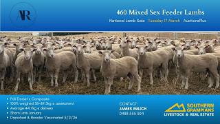 The Little Family are offering a line of 460 Mixed sex Poll Dorset x Composite lambs, These lambs were 100% weighed 38kg + ensuring an even run of lambs with no tail in mob, An excellent opportunity to secure well bred June/July drop lambs that will grow in heavy domestic or export weighted Lambs if given the opportunity, Lambs were shorn on 30th January and drenched & Booster vaccinated on the 5th of February. Lambs are Currently running on Summer Crop Beneath Center pivot and are on the do.