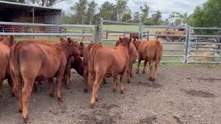 Buyers a top line of well bred Red Angus heifer weaners averaging 281kg. These heifers present as a very classy and even line, with 50kgs from lightest to heaviest. Backed with some very good genetics (Enfield, Dobson, Effingham, Frankcombe) these heifers present in good, forward condition and should continue to take full advantage of any feed available. These heifers would ideally be suited grow out into future breeder females or alternatively will finish into medium to heavyweight yearlings suitable for all grassfed markets being Greenhams NE acc and NG/NA