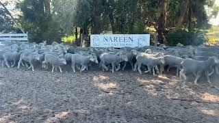 This is a draft of Nareen Station bred merino wether lambs, located at Boyong, Mt Benson SA. These lambs are part of the Nareen Station Annual Production Sale. Nareen Station aims to breed sheep that are highly profitable and easy care. The breeding objectives in the commercial flock are to have adult sheep which are 18-19 micron and capable of cutting large quantities of white, bright wool on a plain bodied sheep.