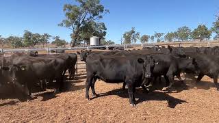 VERY WELL BRED ANGUS COWS. MILLAH MURRAH + COFFIN CREEK BLOOD - VENDOR ALWAYS BUYS HIGH GRADE GENETICS. THESE COW'S ARE 5.7 TO 5.9 YRS & HAVE BEEN JOINED TO SON'S OF MILLAH MURRAH PARATROOPER. THE WALLINGS FAMILY NORMALLY PUTS PROGENY THROUGH OWN FEEDLOT & SUPPLIES HIGH END SUPER MARKET SPEC'S. THIS IS THE FIRST TIME THEY HAVE OFFERED STORE COW'S. THESE WERE THE LARGER FRAMED TYPES, THEY WERE PREG TESTED ON THE 13.3.26 WITH THE INTENTION OF KEEPING HOWEVER SEASON HAS DICTATED OTHERWISE. PROGENY HAVE PERFORMED VERY WELL IN HOOF & HOOK COMPETITIONS & ARE KEENLY SOUGHT BY REPEAT BUYERS.THEY CARRY LITTLE FAT COVER BUT PRESENT IN STRONG CONDITION. 3 COWS WITH OLD EYE SCARRING NCD. A TOTAL OF 130 COWS ON OFFER