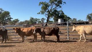 WELL BRED CROSS COWS. VENDOR ALWAYS BUYS HIGH GRADE GENETICS. THESE COW'S ARE 5.7 TO 5.9 YRS & HAVE BEEN JOINED TO SON'S OF MILLAH MURRAH PARATROOPER. THE WALLINGS FAMILY NORMALLY PUTS PROGENY THROUGH OWN FEEDLOT & SUPPLIES HIGH END SUPER MARKET SPEC'S. THIS IS THE FIRST TIME THEY HAVE OFFERED STORE COW'S. THESE WERE THE MEDIUM FRAMED TYPES, THEY WERE PREG TESTED ON THE 13.3.26 WITH THE INTENTION OF KEEPING HOWEVER SEASON HAS DICTATED OTHERWISE. PROGENY HAVE PERFORMED VERY WELL IN HOOF & HOOK COMPETITIONS & ARE KEENLY SOUGHT BY REPEAT BUYERS.THEY CARRY LITTLE FAT COVER BUT PRESENT IN STRONG CONDITION. 1 COW WITH OLD EYE SCARRING NCD. A TOTAL OF 130 COWS ON OFFER