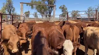 54 VENDOR BRED CHAROLAIS AND SANTA GERTRUDIS CROSS STEERS - FULLY WEANED AND EDUCATED. These are the lead article of the #6 steers. Weaner steers from a vendor bred herd that are bred in red, mulga, box country. Weaner steers familiar with grazing browse and utilising loose lick. Steers are currently being yard weaned and being fed a silage roughage in bunks until delivery. Steers have good shape and bone and would provide a quality article to grow into a heavy feeder market. Vendor is offering delivery to Roma Saleyards on Monday the 27 April 2026.