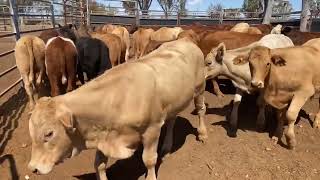 52 VENDOR BRED CHAROLAIS AND SANTA GERTRUDIS CROSS STEERS - FULLY WEANED AND EDUCATED. Weaner steers from a vendor bred herd that are bred in red, mulga, box country. Weaner steers familiar with grazing browse and utilising loose lick. Steers are currently being yard weaned and being fed a silage roughage in bunks until delivery. One steer had their eye treated for mild pinkeye at assessment. Steers have good shape and bone and would provide a quality article to background. Vendor is offering delivery to Roma Saleyards on Monday the 27 April 2026.