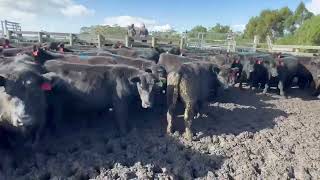 Buyers a very good line of well-bred yearling Angus steers a/c Pilkington Pastoral averaging 353kg. This is the second line with a total of 98 to be offered as 2x 25 and 2x 24 run out the gate. These steers are majority medium to large frame and are displaying shape, style and type. This is a no-frills operation where mobs are run in large numbers, therefore going forward these steers have the potential to put a lot of weight on very quickly! Suitable for all grassfed markets being Greenhams Sustainability and NE acc, NG/NA