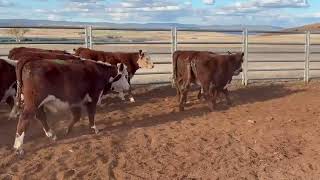 Buyers the second line of predominantly Poll Hereford steer weaners averaging 259kg a/c Lochiel. These late drop Spring calves are a very even line with 50kgs from lightest to heaviest, and all of the hard work already being done! Weaned late March and drenched a week ago, these calves are ready to take full advantage of any feed available. They have good frame, length, shape and bone, and going forward will grow into well finished medium to heavyweight cattle suitable for all grassfed programs being Greenhams NE acc, JBS FA and NG/NA